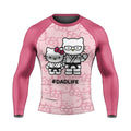 The Hello Kitty Dadlife Rash Guard is a unique blend of style and functionality, designed for enthusiasts of various athletic disciplines. Whether you're into MMA, Brazilian Jiu-Jitsu, Jiu-Jitsu, Muay Thai, No-Gi Jiu-Jitsu, Grappling, Wrestling, Kickboxing, or engaging in fitness activities like gym workouts, Crossfit, and general fitness, this rash guard is tailored to meet your needs.
