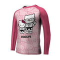Drawing design inspiration from the realms of superheroes, the mythologies of the Norse and Romans, and the rich tapestries of Asian cultures, this rash guard marries the mystique of ancient myths with the dynamism of contemporary sports. The Hello Kitty Dadlife Rash Guard is not just a piece of athletic wear; it's a statement of style and power.